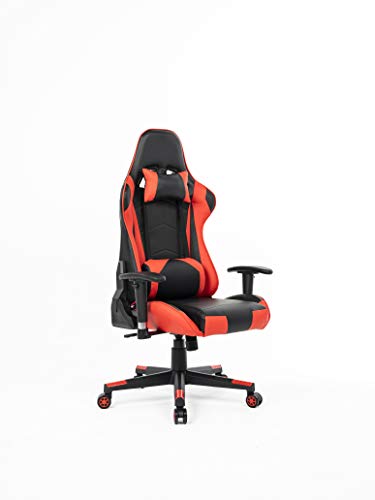 URBAN WAVE - الموديل: كرسي العاب مريح من موسكو كمبيوتر المكتب مع وسادة مسند راس ودعم قطني احمر معدن
