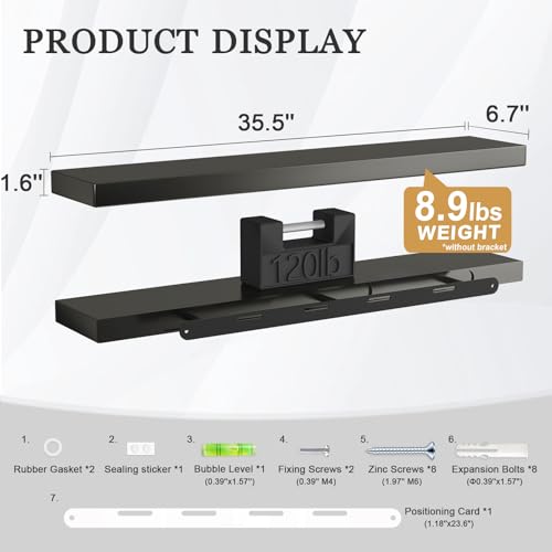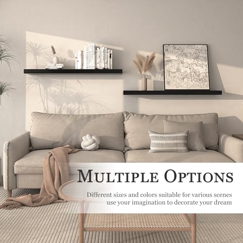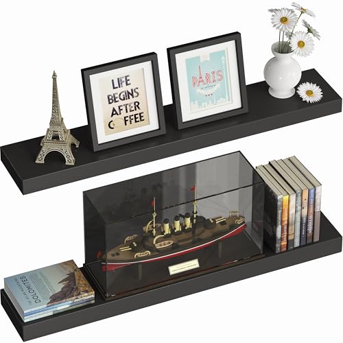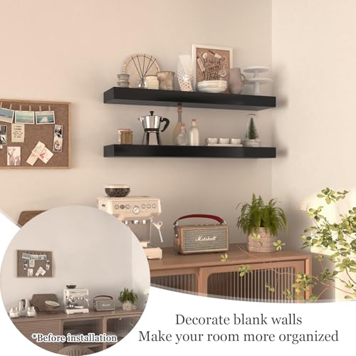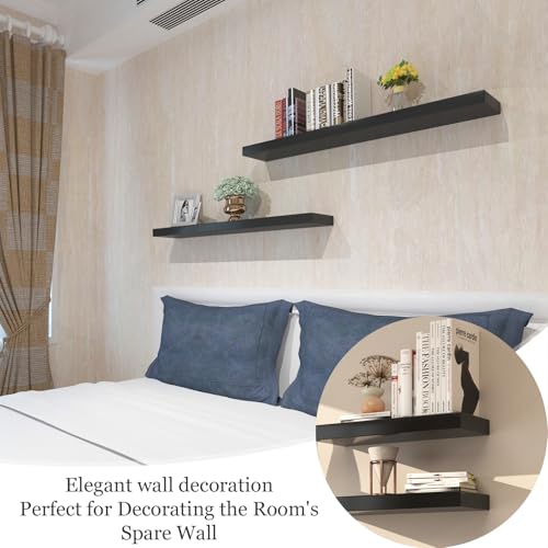 URBANCOZ - رفوف عائمة للحائط، رف من الخشب الطبيعي، رفوف خشبية للحمام مع حامل تثبيت مخفي، مناسب للحمام والمكتب والمطبخ من اوربانكوز، طقم من قطعتين (أسود، 90 سم)