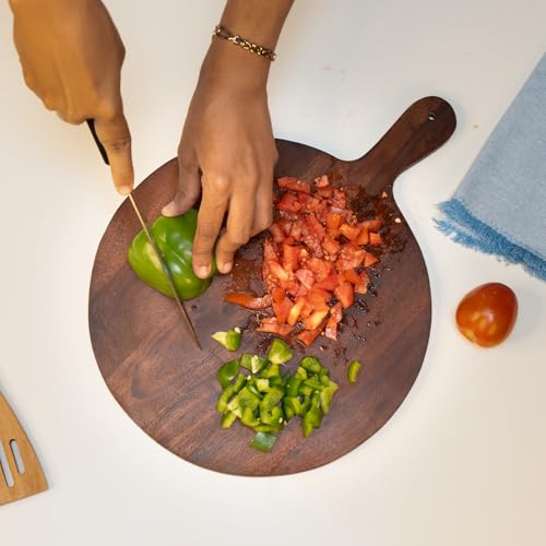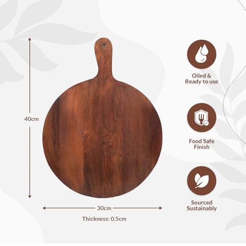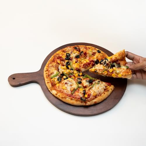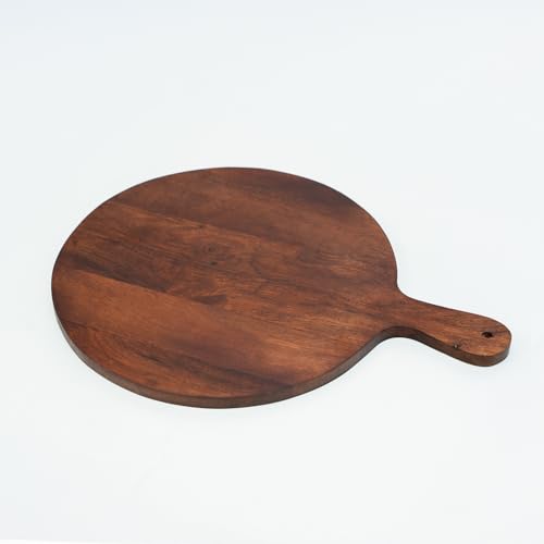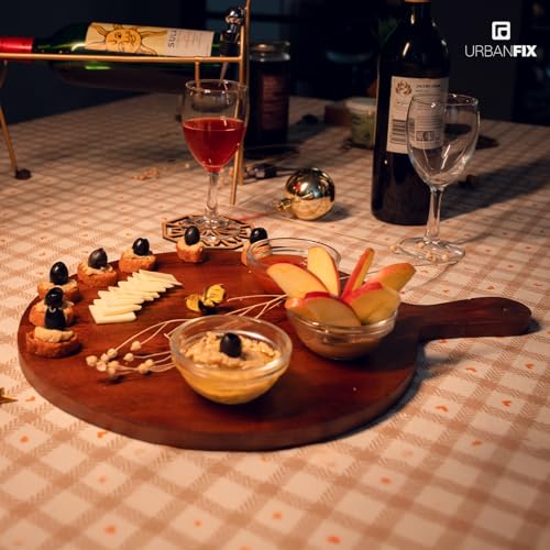 URBANFIX - طبق تقديم خشبي دائري من خشب الاكاسيا للوجبات الخفيفة والفواكه والخضروات | صينية تقديم البيتزا | لوح تقطيع خشبي | لوح تقطيع دائري وطبق تقديم | مجموعة اطباق لوح تشاركوتيري من اوربان فيكس