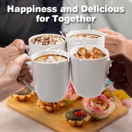 Urbanstrive - طقم أكواب قهوة كبيرة سعة 470 مل، مكونة من 4 أكواب قهوة سيراميكية بيضاء، أكواب قهوة، أكواب شاي، هدية مثالية للنساء والرجال، هدايا تدفئة المنزل، مكتب منزلي جديد، عبوة من 4 قطع (أبيض) من أوربان سترايف