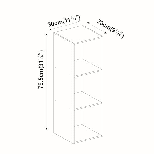 - الأبعاد (سم): - رف مكعب: العرض 30 × العمق 30 × الارتفاع 30 2 الرف: العرض 30 × العمق 23.5 × الارتفاع 53.6 3 الرفوف: العرض 30 × العمق 23.5 × الارتفاع 79.5 4 الرفوف: العرض 30 × العمق 23.5 × الارتفاع 106