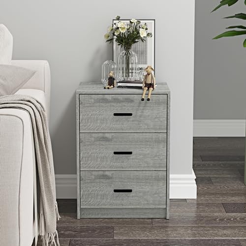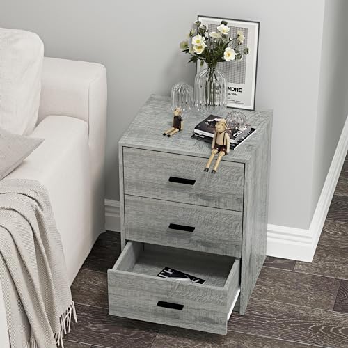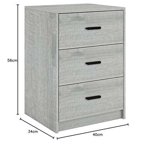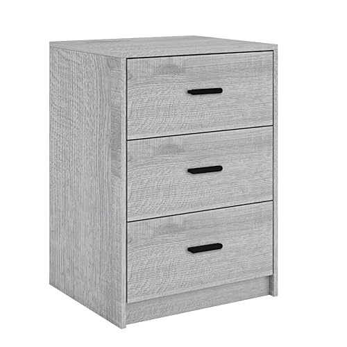 URBNLIVING - دولاب خشبي بجانب السرير ،مكون من 3 أدراج لغرفة النوم من يوربنليفينج (هيكل من خشب البلوط الرمادي+ أدراج من خشب البلوط الرمادي)