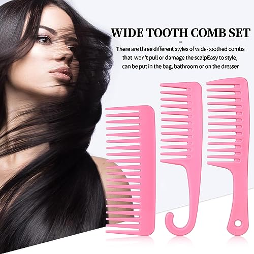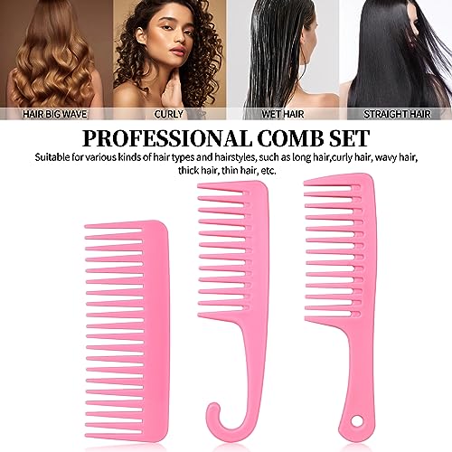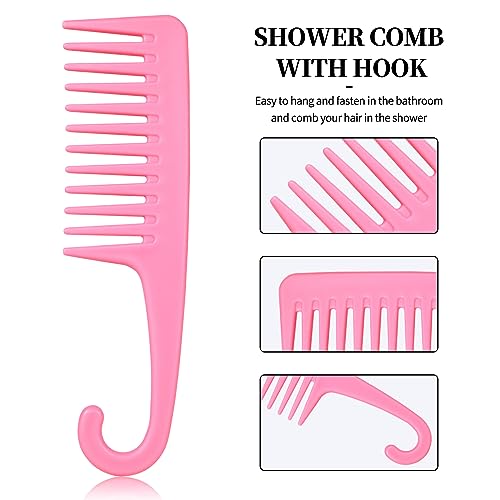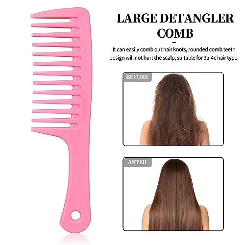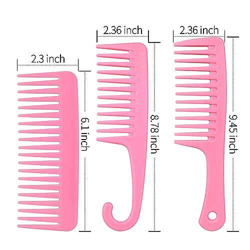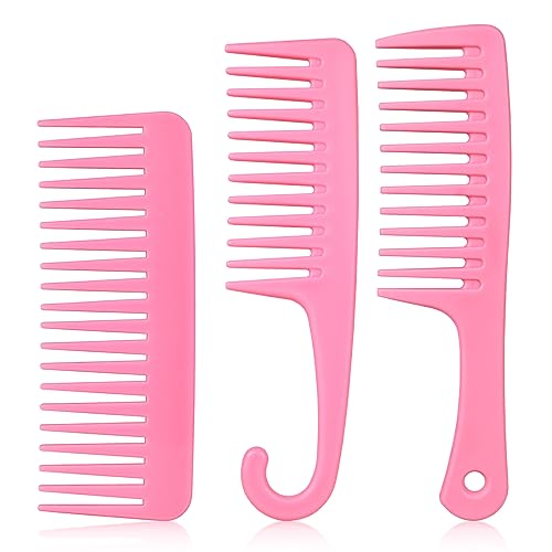 UREELIN - مشط باسنان عريضة ومشط كبير لفك تشابك الشعر من يوريلين، مشط استحمام مع خطاف، مشط شعر من 3 ايه الى 4 سي للشعر المجعد/الرطب/الجاف/الطويل/الكثيف (بينك)