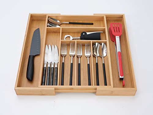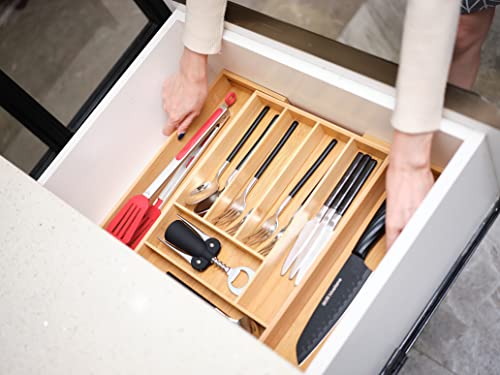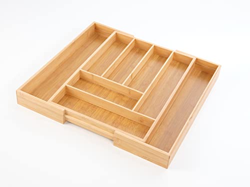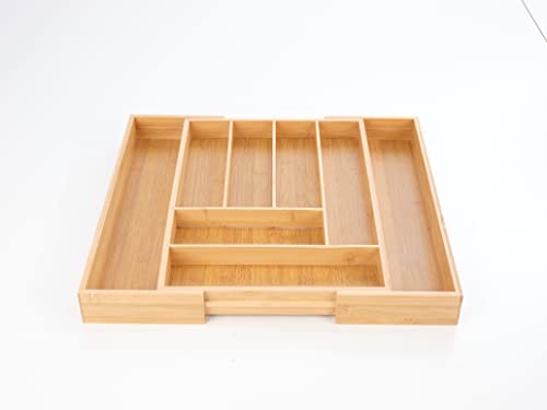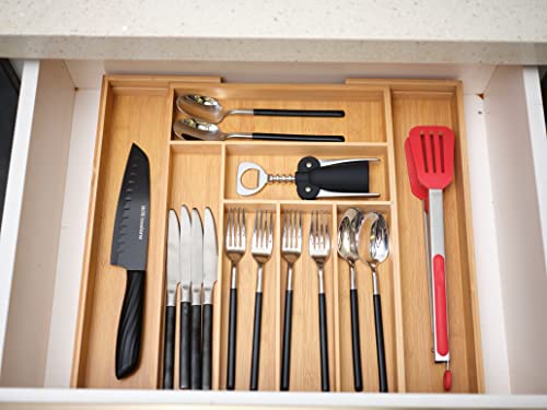 Urgarden - منظم ادراج المطبخ من الخيزران لحمل الاواني صينية ادوات مائدة قابلة للتعديل فواصل قابل للتوسيع للادوات الفضية والاطباق والسكاكين في وغرفة النوم المعيشة 8 شبكات