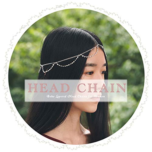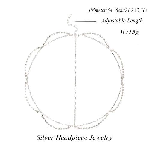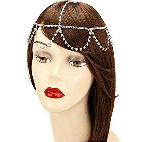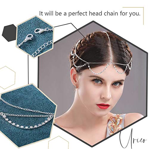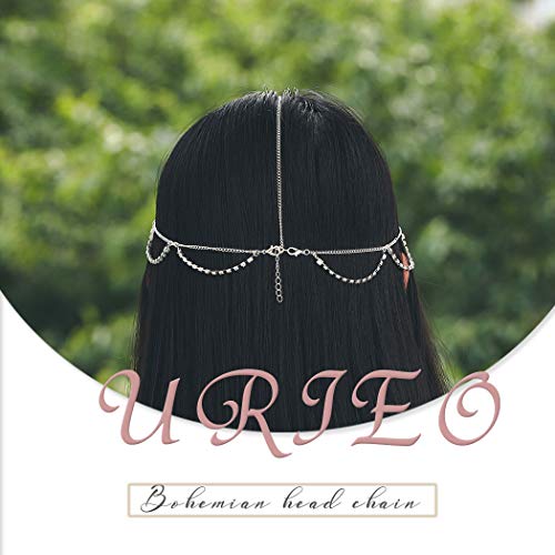 Urieo - سلاسل رأس من حجر الراين بوهو، مجوهرات فضية وسلسلة للجبين، زينة الرأس وطوق للرأس للزفاف للنساء والبنات من يوريو