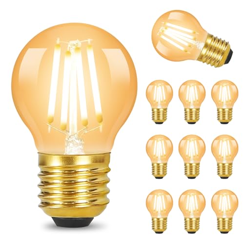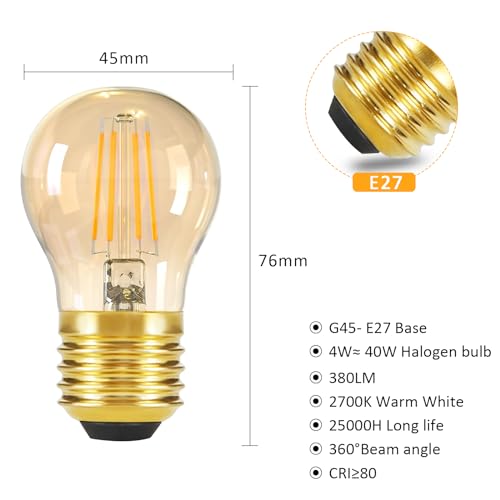 URing - مصباح اديسون LED كلاسيكي E27 من يورينج - 4 واط ابيض دافئ 2700 كلفن خيط، زجاجي كهرماني 380 لومن، داخلي غير قابل للتعتيم، يعادل لمبة متوهجة 40 عبوة 10 قطع (G45)