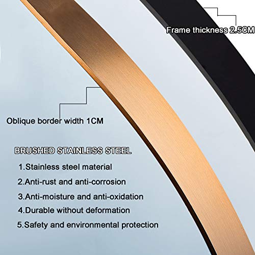 URINGO - مراة حائط دائرية 24 بوصة للحمام باطار معدني مقاس L من يورينجو، مراة حائط مستديرة ديكور لغرفة المعيشة، تعلق على الحائط، مراة التجميل ديكور لغرفة الغسيل والمدخل، مراة جدارية فنية عصرية