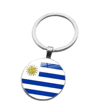 Generic - سلسلة مفاتيح بتصميم علم دولة الأورجواي الوطني الثلاثي الألوان، حلقة مفاتيح معدنية فضية تذكارية لمشجعي فريق كرة القدم
