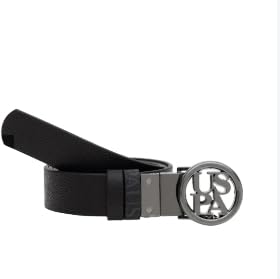 Generic - حزام جلد مصمم من يو اس بولو اسين مع ابزيم معدني دائري، اسود، نمط كاجوال، وجهين قابل للعكس