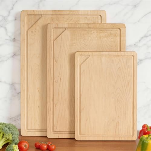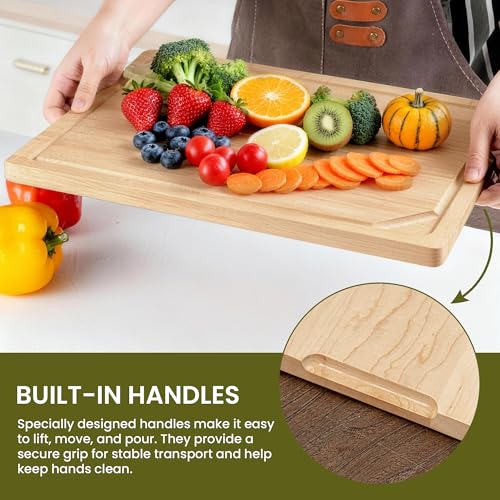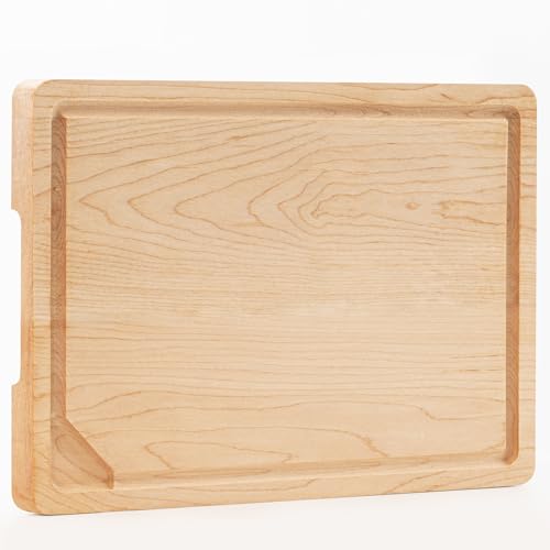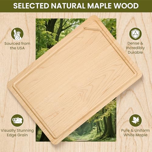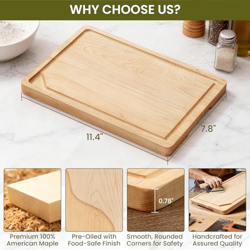 Venusmiles - لوح تقطيع من خشب القيقب من الولايات المتحدة الامريكية للمطبخ (12 انش × 8 انش × 0.8 انش) لوح تقطيع خشبي مسبق الزيت، كتلة جزار من خشب القيقب قابلة للعكس مع اخدود للعصير ومقابض