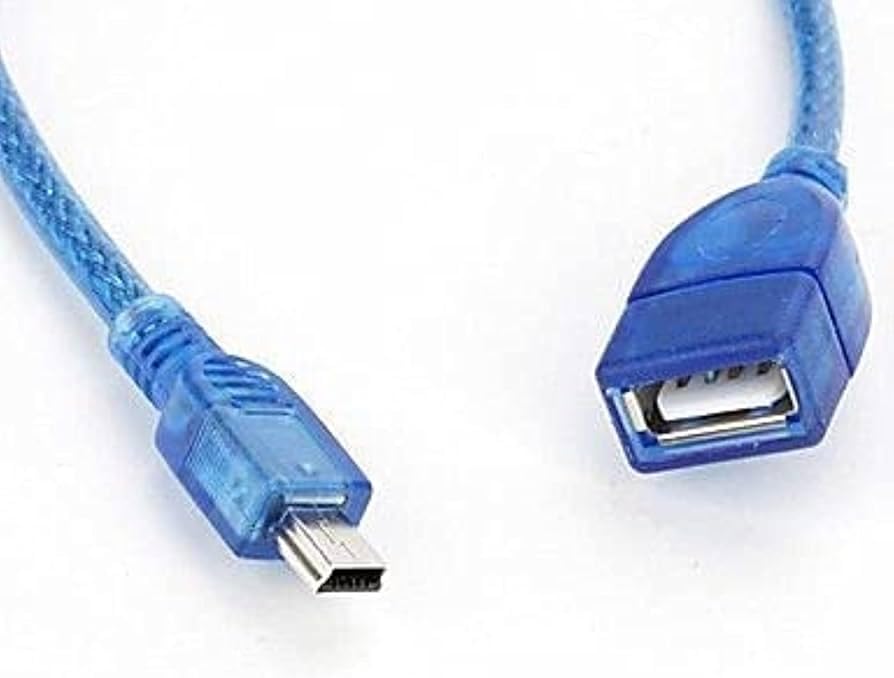 - كابل محول USB 2.0 انثى الى ميني USB 5 دبابيس otg v3، 10 سم - ازرق شفاف