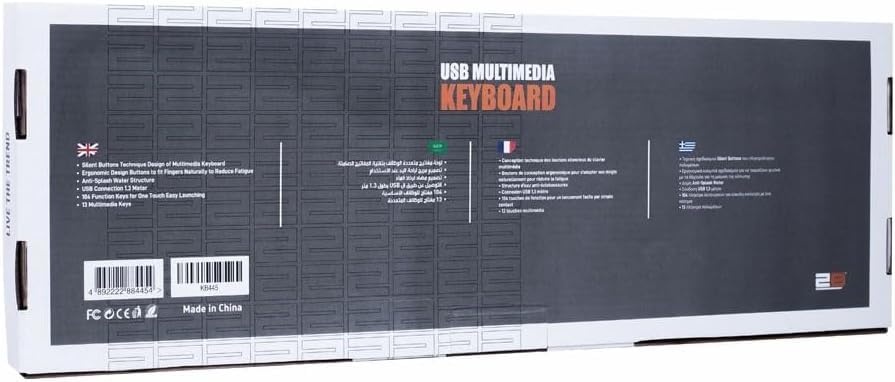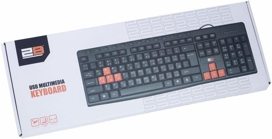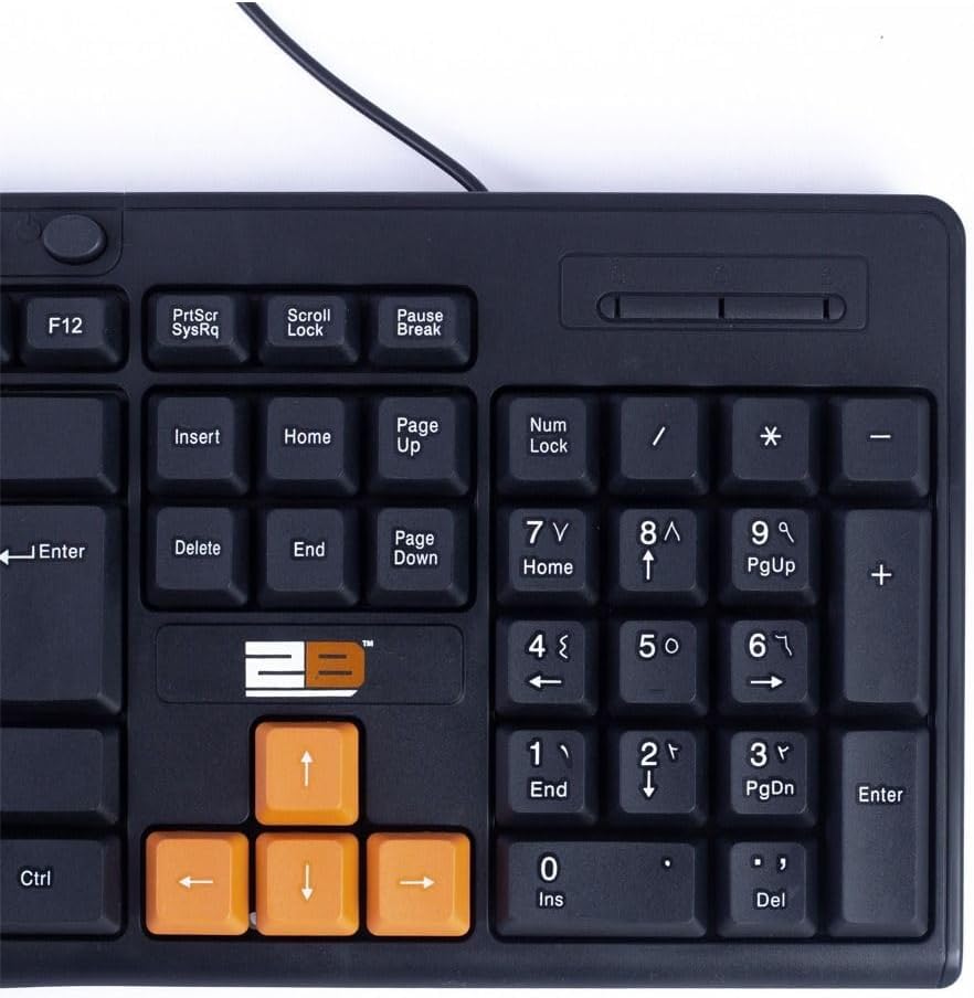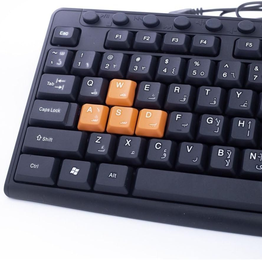 عام - كيبورد للعب للوسائط المتعددة مع أزرار ملونة USB من 2 بي-KB445- اللغة العربية والإنجليزية، تصميم مضاد لرذاذ المياه، لون أسود