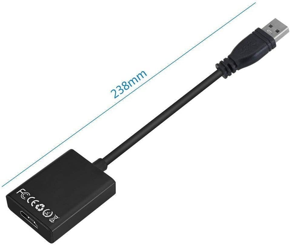 Generic - محول USB 3.0 إلى HDMI، محول صوت فيديو HD 1080P US بكسل إلى HDMI مزود بمخرج صوت وشاشات متعددة متوافق مع ويندوز XP 7/8/8.1/10 للكمبيوتر واللاب توب وجهاز العرض وتلفزيون HD