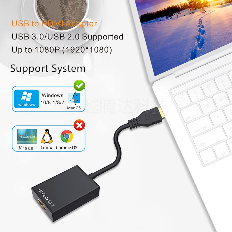 - يقوم محول USB إلى HDMI بتوصيل الكمبيوتر عبر USB بتلفزيون عالي الدقة أو شاشة أو جهاز عرض بمنفذ HDMI؛ يتوفر حل رسومات USB بأعلى أداء. يجمع بين الفيديو والصوت عبر كابل USB واحد وكابل HDMI. --- ملاحظة: متوافق فقط مع ويندوز 7، ويندوز 8، ويندوز 10.