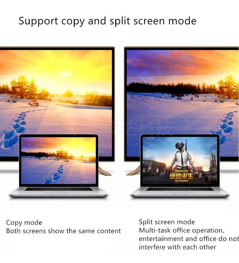 - لا يمكن لمحول USB إلى HDMI مزامنة الصورة مع الشاشة لمنحك متعة بصرية فحسب، بل يدعم أيضًا تمديد الكمبيوتر بشاشة عرض مقسمة لتعزيز كفاءة عملك. مثالي للترفيه عن الألعاب والمسرح المنزلي ومؤتمرات الفيديو وتدريب الشركات وما إلى ذلك.