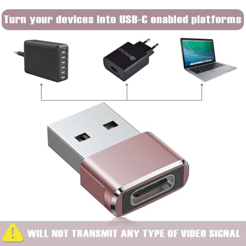 Generic - وصلة محول من نوع USB-A إلى USB-C - شحن سريع ونقل بيانات - متوافقة مع كابلات نوع سي - عبوة من 3 قطع، لون روز جولد