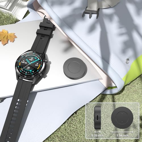 - 👍【قاعدة شحن فقط】قاعدة الشحن فقط لساعة هواوي GT مقاس 42 ملم 46 ملم/ GT2 مقاس 42 ملم 46 ملم/ GT 2e الذكية، ساعة هونر ماجيك 42 ملم 46 ملم/ ماجيك ووتش 2 42 ملم 46 ملم/ ووتش دريم/ووتش GS برو، لا يأتي مع سلك شحن. إنه مريح للغاية للحمل وسهل لرحلات العمل، الشاحن الخاص بنا متوافق مع أي كابلات USB من النوع C الخاصة بك.