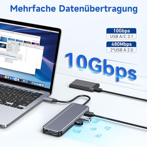 - نقل سريع 10 جيجابت في الثانية: منفذي USB A/C 3.1 عاليا السرعة بسرعة نقل 10 جيجابت في الثانية لنقل البيانات بسرعة. 2 منفذ USB A 2.0 بسرعة تصل إلى 480 ميجابت لكل ثانية وقارئ بطاقات SD/تي اف بسرعة 300 ميجابت في الثانية، تتيح لك قاعدة التوصيل ليونوي عرض الصور أو مقاطع الفيديو الخاصة بك بسرعة، والوصول بسلاسة إلى البيانات التي تحتاجها وتوفير المزيد من الوقت لنقل البيانات.