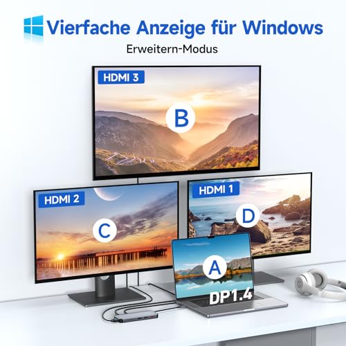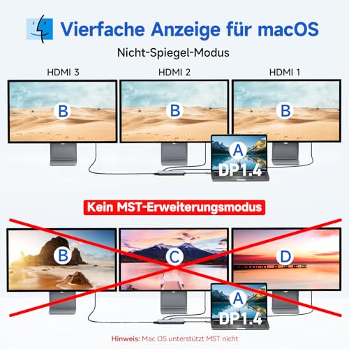 - قاعدة توصيل لـ3 شاشات: مزودة بـ 3 منافذ HDMI بدقة 4K، يمكن لقاعدة الشحن USB C هذه توصيل شاشتين أو ثلاث شاشات خارجية في نفس الوقت بإعدادك ما يوفر لك مساحة كبيرة للشاشة لتعدد المهام والتحرير والاستمتاع بمحتوى وسائط متعددة عالي الجودة. يمكن أن تصل الدقة القصوى إلى 4k عند 60 هرتز. يرجى ملاحظة ما يلي: تدعم نظام تشغيل ماك وضع النسخ المتطابق فقط دون توسيع ثلاث شاشات مختلفة في نفس الوقت.