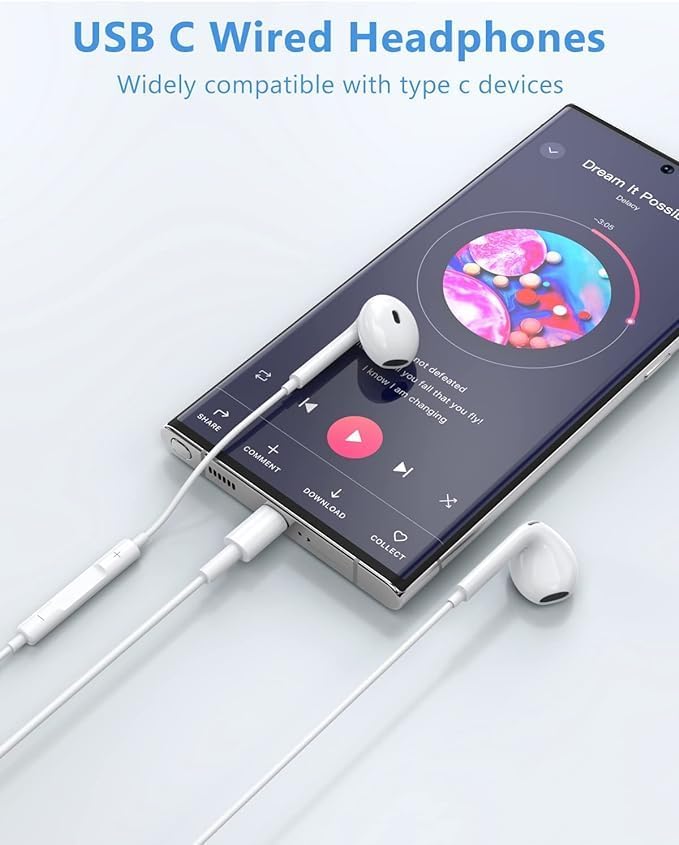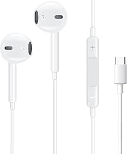 Generic - سماعات رأس USB سي، للأذن بصوت ستيريو سلكي مع ميكروفون وتحكم في الصوت، عازلة للضوضاء لـ P50/P40/P30، ايباد برو، بكسل 7/6 S23 S22 S21/IP15، ابيض