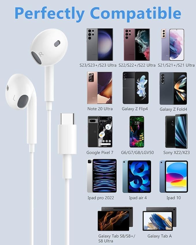 - سماعات رأس USB C، سماعات للأذن بصوت ستيريو سلكي مع ميكروفون وتحكم في الصوت، عازلة للضوضاء لـ P50/P40/P30، ايباد برو، بكسل 7/6 S23 S22 S21/IP15