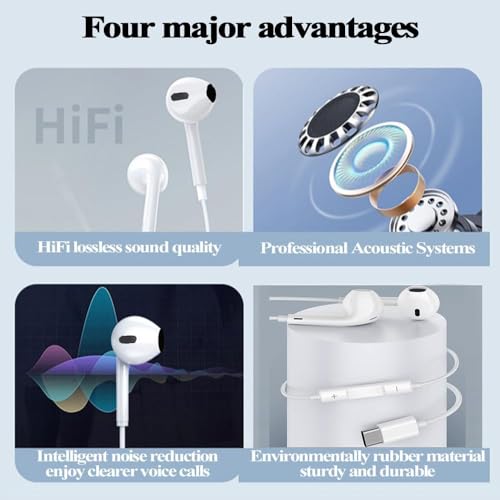 SYSTENE - سماعات اذن نوع سي بمنفذ USB هاي فاي ستيريو رقمي تناظري مع ميكروفون للهواتف الذكية التي تعمل بنظام اندرويد متوافقة سامسونج جالاكسي S21 الترا 5G S20 داخل الأذن أبيض