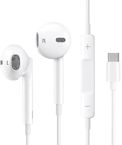 Rns LosDrd - سماعات راس USB C داخل الأذن هاي فاي ستيريو بتقنية لتقليل الضوضاء مع ميكروفون وتحكم في مستوى الصوت متوافقة سامسونج S20 S10 واوي P40 P30 ميت 20 جوجل بكسل 5 4 3 2XL وغيرها سلكي الداخل أبيض