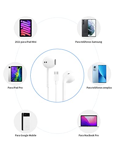 JYmusic - سماعات أذن USB نوع C لسامسانج جالاكسي S22 ألترا وS21 FE وS20 وA53، سماعات USB نوع C مع ميكروفون داخل الأذن، سماعات سلكية USB نوع C لآيباد برو 2021/2020 وبيكسل 3 و2