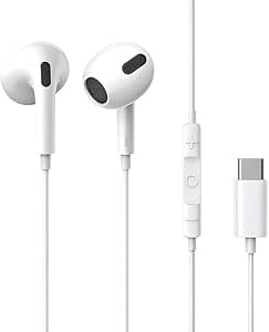 - سماعات داخل الاذن USB C، اذن ستيريو هاي فاي نوع مع ميكروفون وتحكم في مستوى الصوت