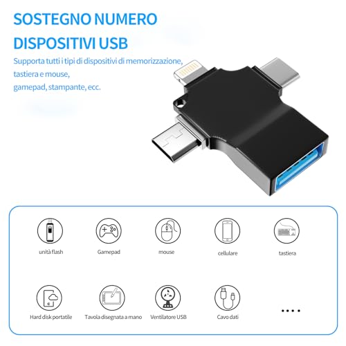 HOYULLI - محول 3 في 1 من USB C ولايتنينج وMicro USB إلى USB لآيفون 15 بكابل او تي جي 3.0، فلاش ميموري أنثى لمحولات آبل، محول من النوع C للايباد والكاميرا متوافق مع سامسونج TP-OTG