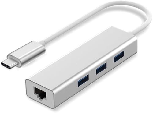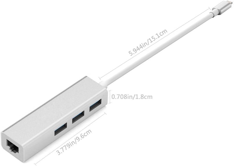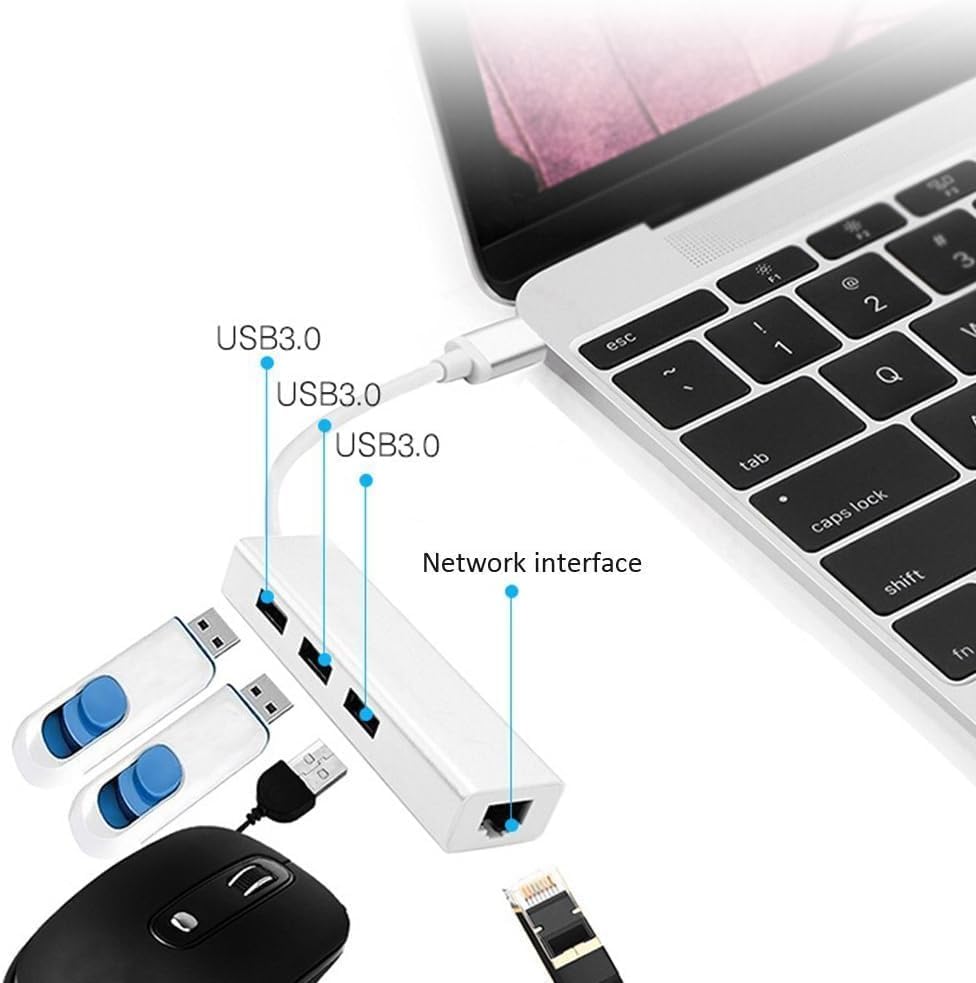 - محول USB نوع C إلى 3 منافذ + محول ار جيه 45 إلى شبكة محلية جيجابت إيثرنت + 3 منافذ USB لماك بوك/ برو/ اي ماك/ كروم بوك