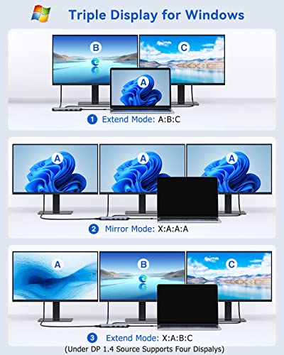 - منفذ USB C إلى شاشة عرض مزدوجة بدقة 4K: استمتع بدعم شاشة مزدوجة بدقة 4K مع قاعدة شحن USB-C. يرجى التأكد من أن منفذ USB C الخاص بك يتوافق مع مواصفات DP 1.4 للحصول على الأداء الأمثل. ملاحظة: الوضع الممتد غير متوافق مع نظام التشغيل MacOS.