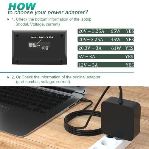- المواصفات: الإدخال: 110-240 فولت (الاستخدام العالمي)؛ الإخراج: تيار مستمر 65W-20V-3.25A/ 45W-20V-2.25A/ 61W-20.3V-3A/ 9V-3A/ 12V-3A/ 15V-3A/ 5V-3A ؛ الطول الإجمالي: 2 متر.