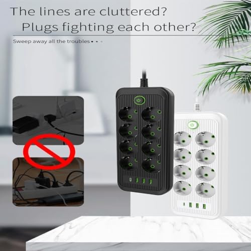Generic - مشترك كهربائي ذكي USB C-Type حماية فائقة ضد الكهرباء تصميم أنيق – متعدد الاستخدامات في المنزل والمكتب (8 منافذ)