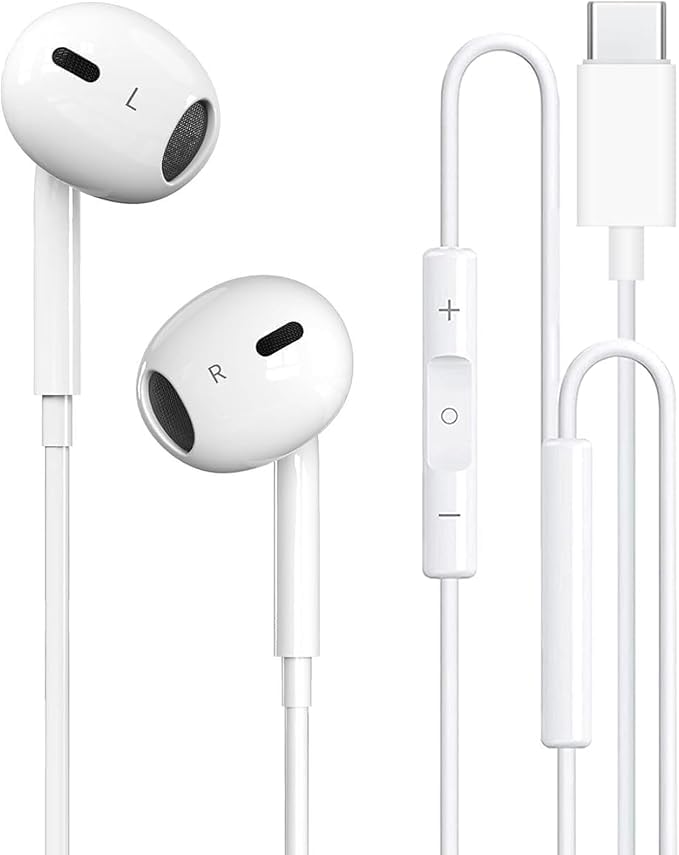 Generic - سماعات أذن بسلك بمنفذ USB نوع سي مع ميكروفون وأزرار تحكم مع خاصية إلغاء الضوضاء متوافق مع هواتف الآيفون 16 و16/15 برو ماكس واي باد وجالاكسي S23/S22/S21/S20/الترا نوت 10/20 وبيكسل 7/6/5/4