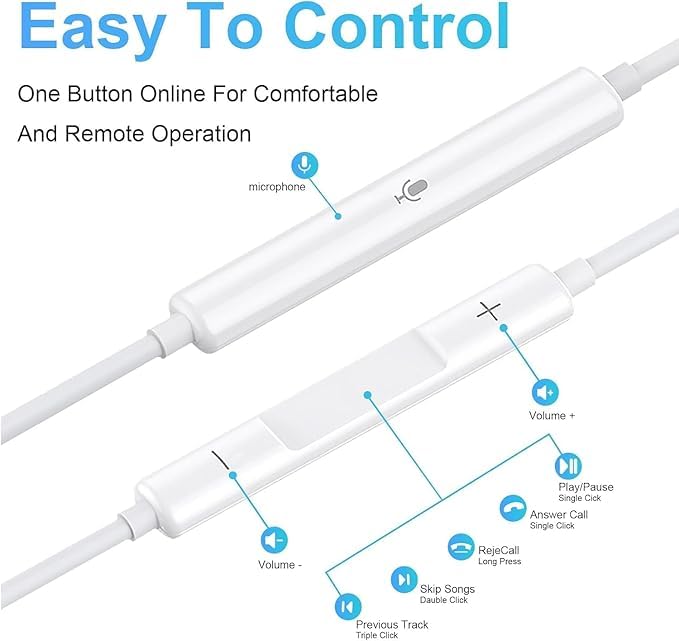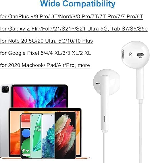• سماعات أذن بسلك بمنفذ USB نوع سي مع ميكروفون وأزرار تحكم مع خاصية إلغاء الضوضاء متوافق مع هواتف الآيفون 16 و16/15 برو ماكس واي باد وجالاكسي S23/S22/S21/S20/الترا نوت 10/20 وبيكسل 7/6/5/4