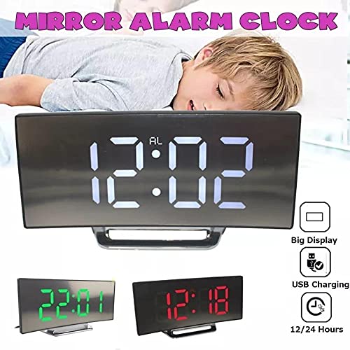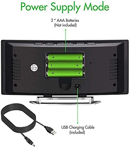 Generic - منبه رقمي بشاشه مراه ليد منحنيه متعدد الاستخدامات، بلاستيك، أسود
