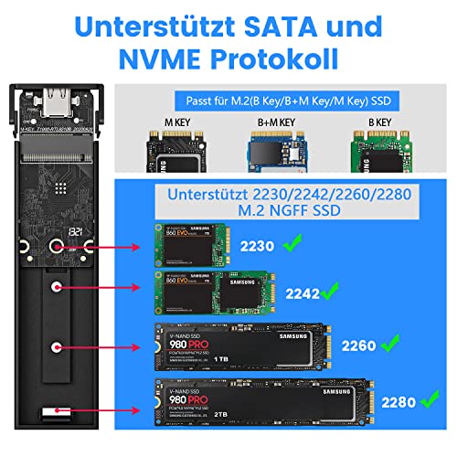 - 【غالبًا ما يتوافق مع سامسونج/كروشيال/دبليو دي وما إلى ذلك】متوافق مع وسيط التخزين المستدام SSD M.2 بمنفذ الملحقات الإضافية السريع 2230 2242 2260 2280 M.2 من ام كي أو مفتاح M+B وM.2 ساتا SSD من مفتاح M+B. يدعم غلاف SSD ويندوز وماك او اس ولينكس واندرويد ويدعم او تي جي. ما عليك سوى التوصيل والتشغيل دون الحاجة إلى برامج تشغيل أو برامج إضافية. متوافق مع سامسونج 960/970/980/870 ايفو، 950 980 برو، دبليو دي، كروشيال بي 2/ بي 4/بي 5، كينغستون، سيجيت، توشيبا، او دبليو سي، بلاي ستيشن 4، بلاي ستيشن 5، اكس بوكس سيريز اكس وما إلى ذلك.
