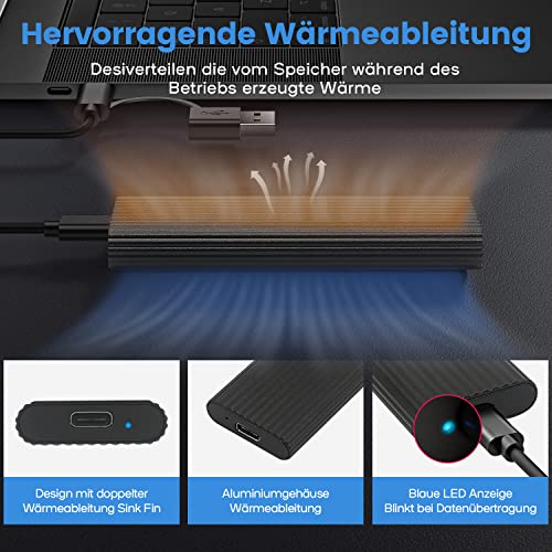 - 【سرعة عالية 10 جيجابايت في الثانية - نقل ملفات 1 ثانية】متوافق مع الإصدارات السابقة مع USB 3.0/2.0. يدعم حتى 10 جيجابايت في الثانية. يحتوي غطاء وسيط التخزين ذو الحالة الثابتة M2 على شريحة RTL9210B المتقدمة، مما يجعله سرعة قراءة أسرع بنسبة 70% وسرعة كتابة أسرع بنسبة 40% من USB 3.0 التقليدي. حل مثالي لنقل البيانات والنسخ الاحتياطي للبيانات، وتسريع وتقليل استهلاك طاقة وحدة المعالجة المركزية.