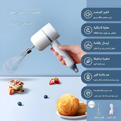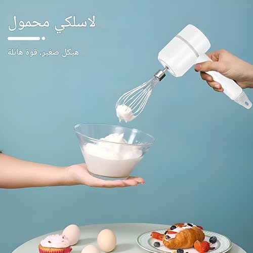 - خلاط يدوي كهربائي لاسلكي ----خلاط يدوي لاسلكي خفيف الوزن ومريح، بمنفذ USB للشحن، يمتاز بسهولة الحمل حتى تستمتعي بصنع الكيك والخبز مع عائلتك.