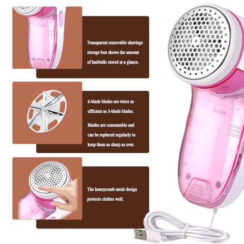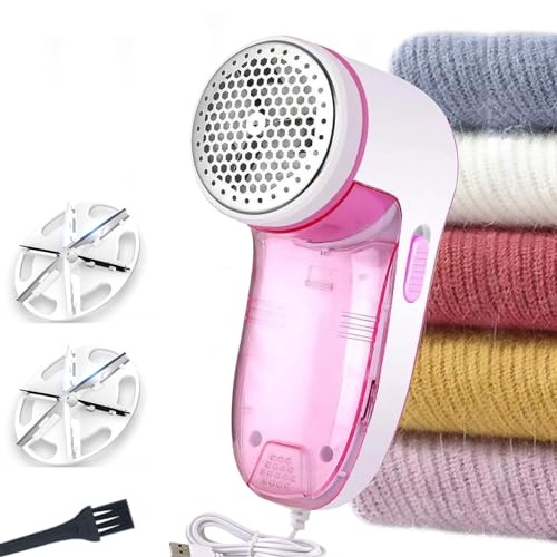JUNDALINDA - ماكينة إزالة وبر الملابس بمنفذ USB مع شفرتين احتياطيتين - تزيل الزغب بشكل فعال وسريع للملابس والسترات والبطانية والستائر والكنبة والصوف والكشمير (سكينة 6 أوراق شجر)