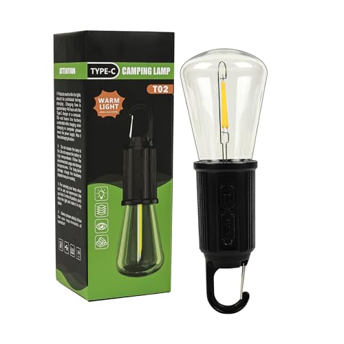 Generic - كشاف مصباح تخييم محمول يو إس بي، إضاءة دافئة، مع خطاف تعليق