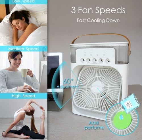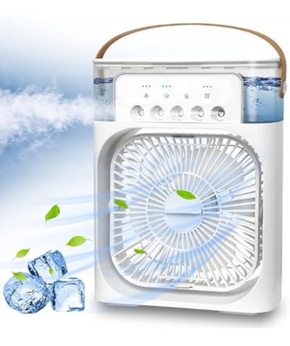 Generic - مرطب هواء محمول يعمل عبر USB مزود برذاذ ماء وأضواء ليد مع 3 مستويات للسرعة ومؤقت، لون أبيض