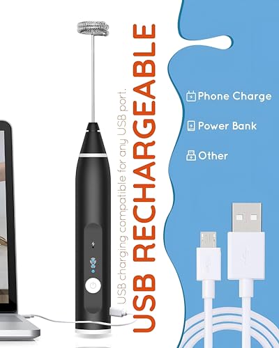 Generic - اداة خفق الحليب قابلة لاعادة الشحن بمنفذ USB - مضرب يدوي من الستانلس ستيل باعدادات متعددة السرعات، خلاط مشروبات صغير للقهوة والكابتشينو بالوان مختلفة