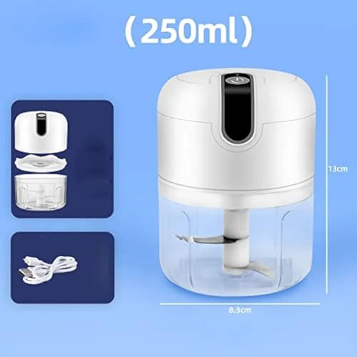 Generic - محضر طعام لاسلكي قابل للشحن عبر USB، مفرمة كهربائية صغيرة 250 مل، 3 شفرات من الستانلس ستيل، بطارية 1300 مللي أمبير، أبيض