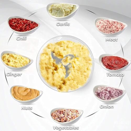 - شفرات فولاذية عالية الجودة: مزودة بـ 3 شفرات من الستانلس ستيل الحادة والمتينة لفرم الثوم والزنجبيل والبصل واللحوم والخضروات بكفاءة عالية وبضغطة زر واحدة