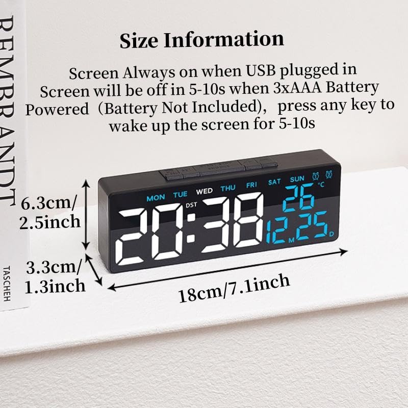 - 🌙 إضاءة ذكية بدون إزعاج تعتيم تلقائي حسب الإضاءة + مستويات سطوع متعددة تناسب الليل والنهار.