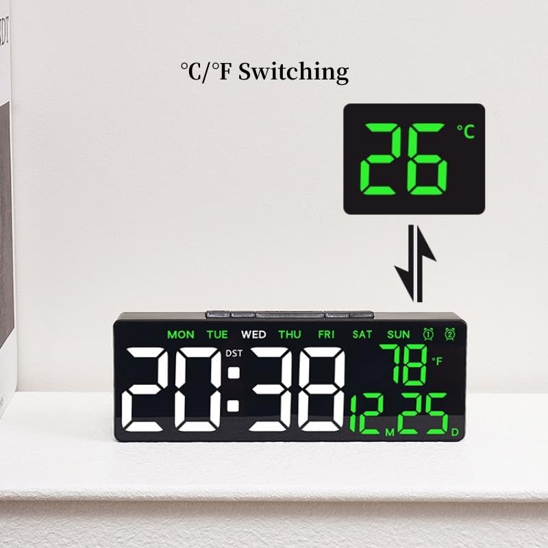 Generic - منبه رقمي LED ذكي بمنفذ USB - ساعة طاولة بإضاءة تلقائية ومنبه مزدوج مع عرض التاريخ ودرجة الحرارة-مناسب لأي مكان غرفة النوم – المكتب – طاولة جانبية (اخضر)
