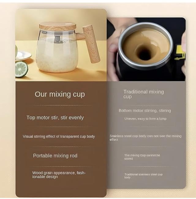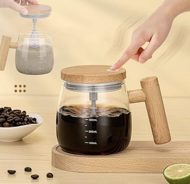 - ▪ تحريك أوتوماتيكي بلمسة زر: يحتوي الكوب على أداة تقليب قوية وسريعة تتيح لك تحضير مشروباتك بسهولة دون الحاجة إلى ملعقة أو خلط يدوي.