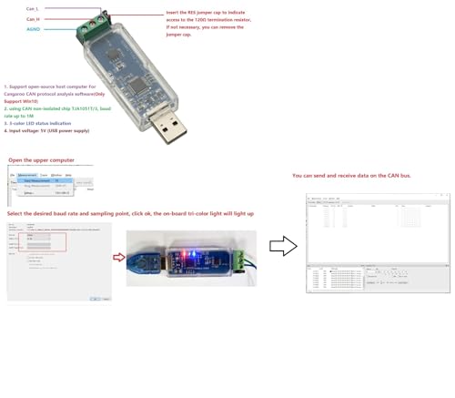 - وحدة USB إلى CAN (TJA1051T/3 إصدار غير معزول) مساعد تصحيح أخطاء ناقل كان، محلل ناقل كان يدعم برنامج الحاسوب العلوي مفتوح المصدر لبرنامج تحليل بروتوكول كانجارو كان.